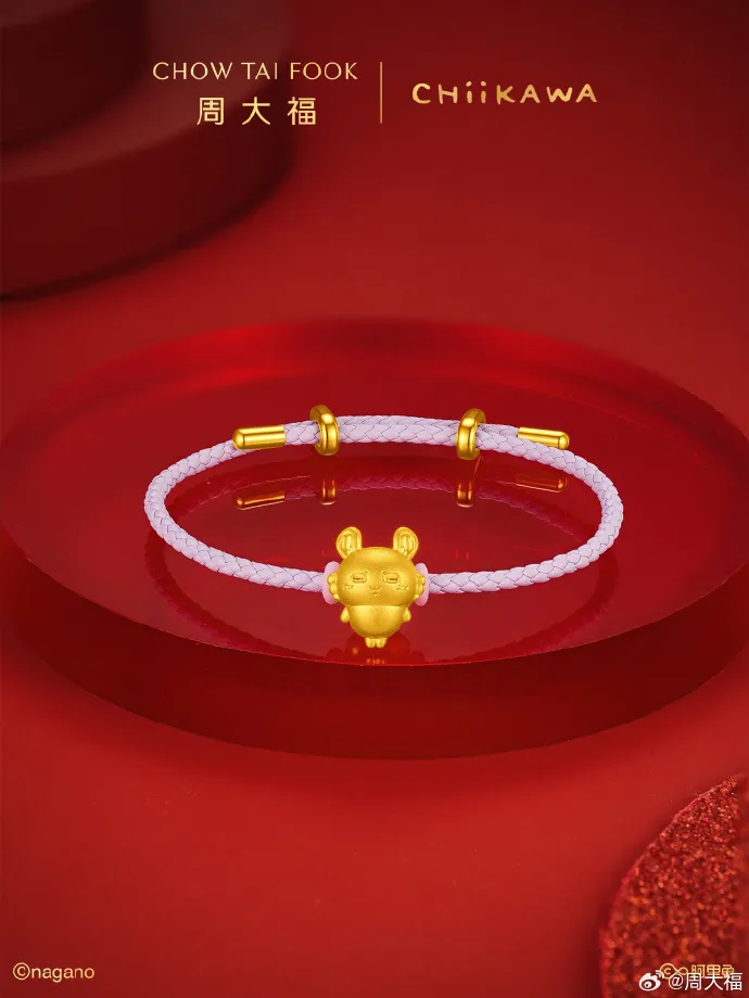 珠宝品牌周大福与吉伊卡哇 CHIIKAWA 合作打造了手链、挂件等黄金饰品。合作围绕吉伊、小八、乌萨奇三大核心角色,还原其萌系形象,打造多元佩戴场景,切入年轻女性与潮玩吃谷人群。新春限定款进一步借节日礼赠需求引爆热度。合作打破珠宝与年轻潮流圈层壁垒,让传统品牌更加年轻时尚。