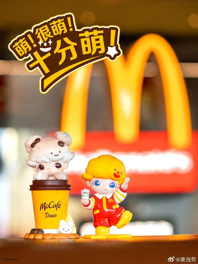 快餐品牌麦当劳与泡泡玛特旗下潮玩 IP DIMOO 开启新春深度联名,推出两款限定新品及配套 IP 包装,包括萌橘醒醒气泡美式、云朵棉花糖麦旋风,杯身与外包装均印有 DIMOO 专属造型,打造高辨识度视觉体验。合作在 15 城限定门店开启手办换购,消费者购买指定产品加价后即可获得“元气咖友”“麦麦麦旋风”两款限定手办,全国限量共 9 万份,开售首日即秒罄。本次合作以限定新品和稀缺手办的热度,将快餐消费转化为潮玩收藏体验,拉近与 Z 世代客群的距离。