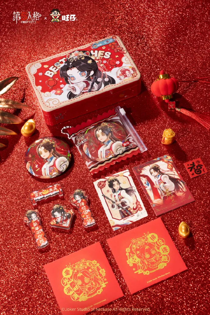 零食品牌旺仔与热门竞技手游《第五人格》推出春节联名礼盒,以及徽章、拍立得、收纳铁盒、亚克力、对联、冰箱贴、吧唧袋、新年红包、联动服时装兑换卡等周边产品,打通二次元与快消消费场景。线下上海、杭州、长沙、重庆、广州、武汉核心商圈上线商圈大屏,强化曝光与打卡传播。合作还在线下活动中邀请专业 COSER与消费者进行互动,增强活动的传播力度,实现国民零食品牌的年轻化破圈。