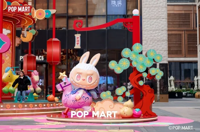 2026 年 2 月 1 日 - 3 月 15 日,泡泡玛特携手 BFC 外滩金融中心打造“点金奔腾”新春游园会主题合作。现场打造宫灯旋转木马、青花瓷造型星星人装置等沉浸式打卡点,LABUBU、星星人、MOLLY 等全明星 IP 亮相。现场还设置主题快闪店,发售独家马年限定周边,同步推出集章兑礼、猜灯谜等互动。合作融合潮玩 IP 与传统年味,打造打卡、互动、消费的完整链路,成为上海新春热门打卡点。