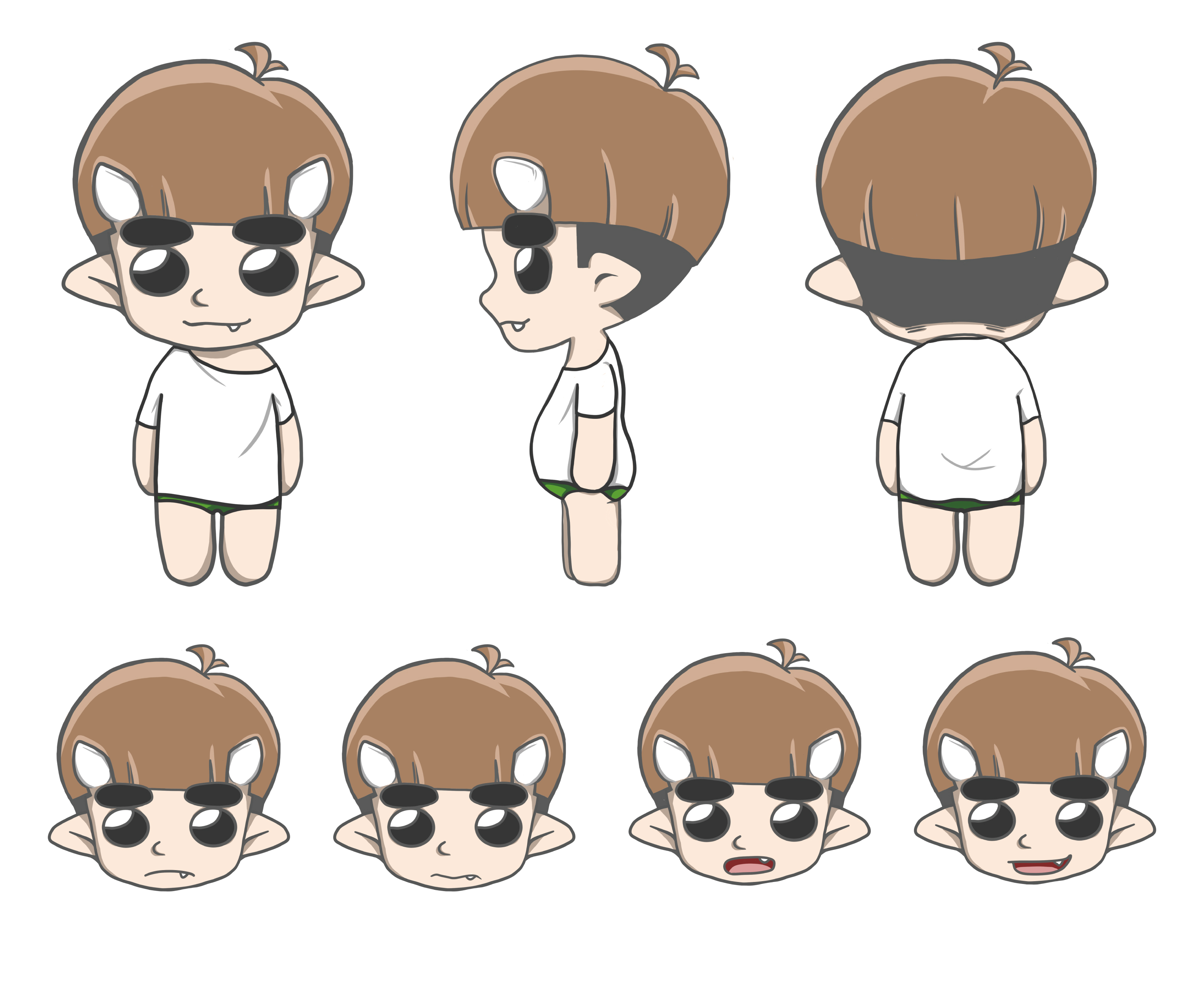 外观特征: 拥有如孩童般的大眼睛、微微上扬的尖牙与小巧尖角,是其最具象征性的面部特征。角与牙齿代表了鬼怪的身份,也让他显得既调皮又充满朝气。