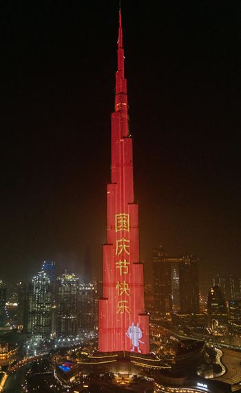 10月1日,兔斯基还以灯光秀的形式,登上世界最高的哈利法塔,与来自世界各地的游客共同庆祝中国国庆节。(更多阅读:人气IP兔斯基亮相迪拜灯光秀送上国庆祝福)