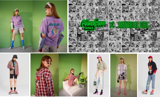 第二个案例来说下飞天小女警X Material Girl。今年3月开始,卡通频道旗下的知名IP飞天小女警携手Material Girl联合推出一整年的产品授权合作,不仅推出了广受年轻人喜爱的潮服,创造了销售佳绩,线下门店的主题陈列展示也可圈可点。