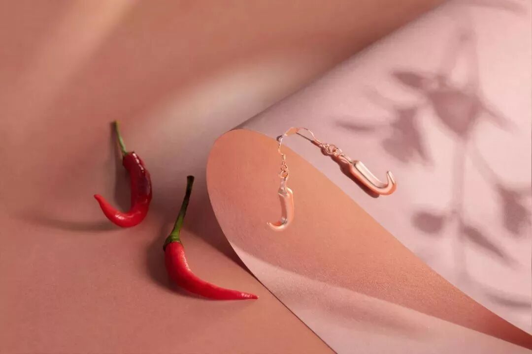 本次系列耳饰均以火锅配料为原型,分有四款:八角、蘑菇、莲藕、辣椒。官网分别赐予文艺名为角星耳饰、菇梦耳饰、藕遇耳饰和椒颜耳饰。把最受欢迎的火锅配料做成深受欢迎饰品,海底捞简直就是一家被火锅耽误的文创企业!