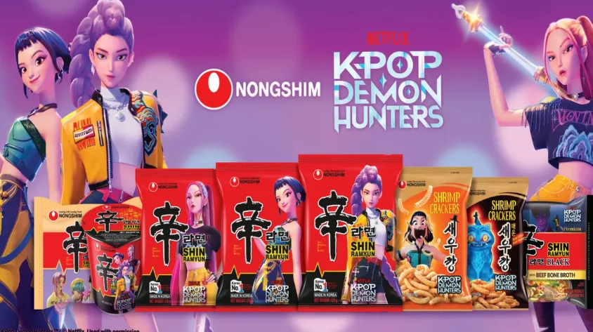 韩国食品品牌农心携手《K-Pop:猎魔女团》推出辛拉面等经典产品。合作灵感源自影片 HUNTR/X 成员同款拉面,电影中的品牌名称设定为与农心发音相似的“同心”,产品包装也让人联想到辛拉面。借助电影元素的热度,本次联名产品精准复刻了影片中鲁米、米拉、佐伊三位角色食用的同款,产品上也印着电影角色的名字。农心还将通过社交媒体、数字内容创作及线下快闪店等多元形式开展系列营销活动,与全球各地的粉丝展开深度互动。