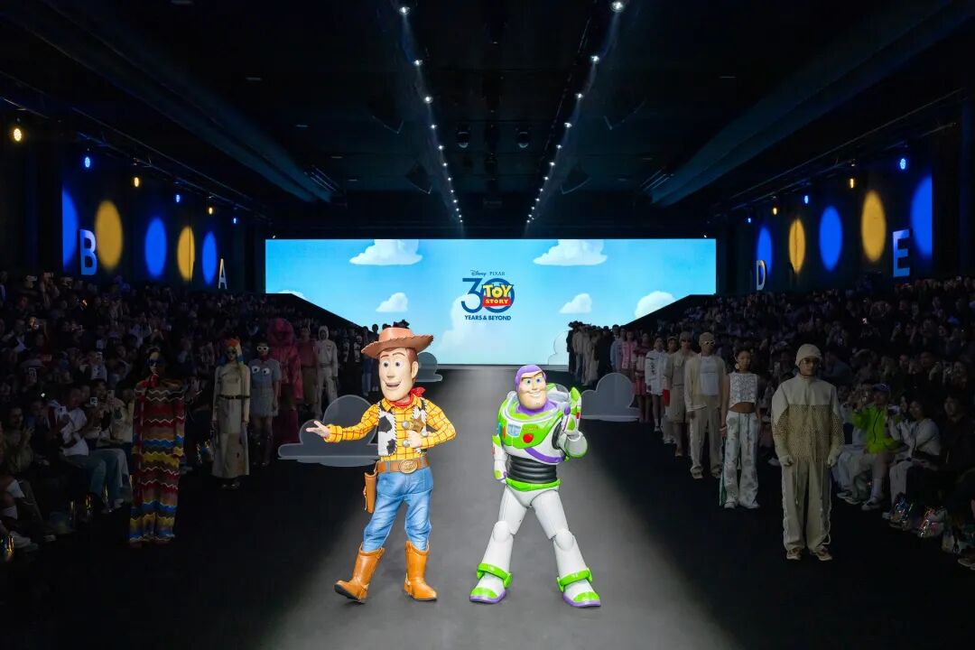 今年,迪士尼中国携手 10 家本土品牌,以《玩具总动员》 30 周年主题时装秀展亮相 2025 秋冬上海时装周,推出全新时尚系列和数字艺术作品共计近 200 件单品,将玩心与时尚融入创意表达。