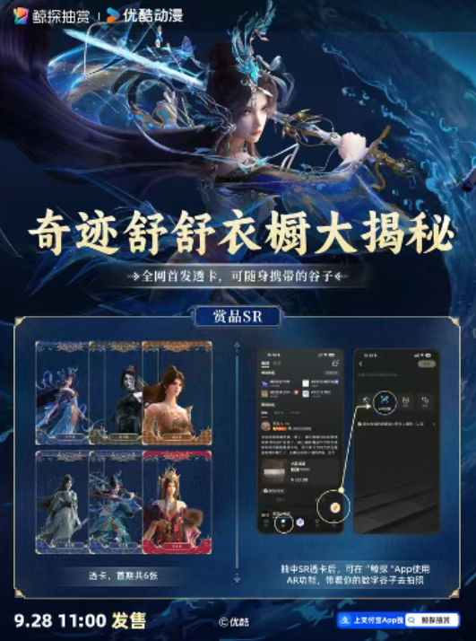 鲸探抽赏与优酷小卡深度合作,精准把握粉丝心理,设计角色及高燃剧情卡牌激发收集欲望。通过明星扫楼联动、签名照活动等方式营造期待感,上线后更设置了集齐套卡的额外奖励机制。