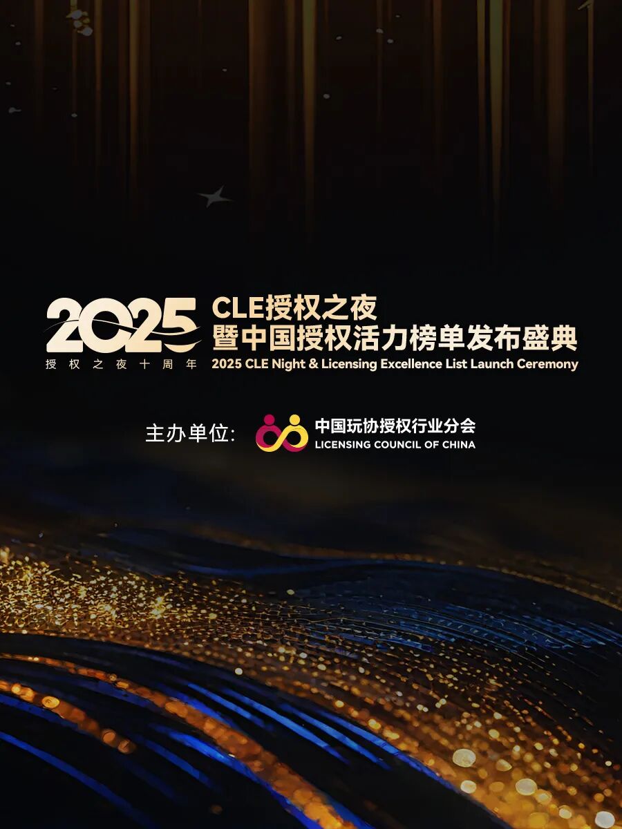 为了促进和引导授权行业高质量发展,中国玩协授权行业分会今年首次发布中国授权活力榜单,对 10 个被授权行业中 180 个活跃品牌在 2024 年 7 月 1 日至 2025 年 6 月 30 日期间与 640 个 IP 进行的授权合作进行了调研,共统计官方公开的 2163 个授权案例,以及 156 家企业申报的 225 个优秀授权案例,从合作频次、销售数据、社媒热度和品牌影响力等维度综合评定。最终究竟都有哪些被授权品牌和 IP 登榜?敬请期待 CLE 授权之夜揭晓 15 大榜单!
