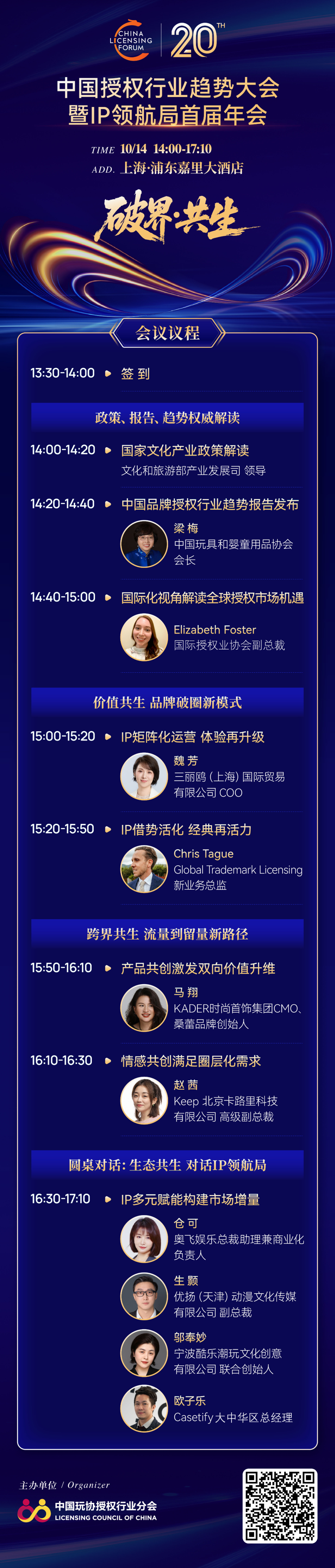 想要抢占先机掌握行业新趋势自然不能错过 10 月 14 日举办的第 20 届中国授权行业趋势大会。