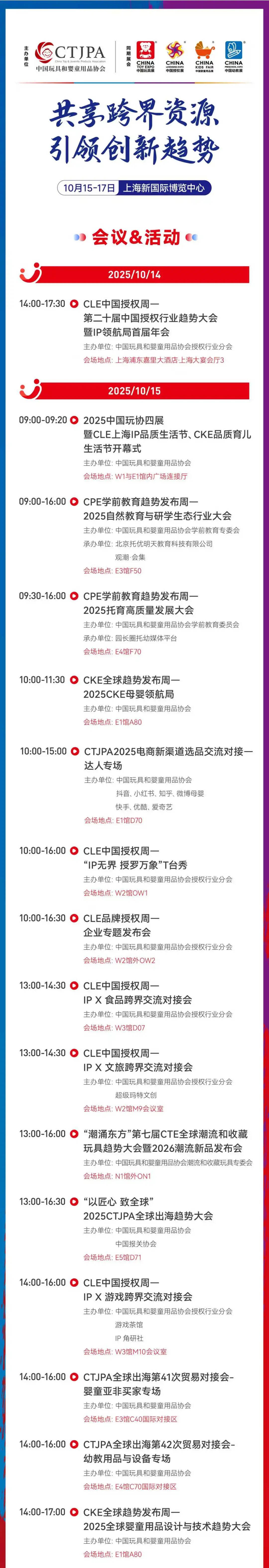2025 年 10 月 15 日-17 日,CLE 中国授权展将在上海新国际博览中心举办。本届展会展览面积超 65000 平米,吸引国内外 566 个展商, 超 2600 个全品类 IP 参展。