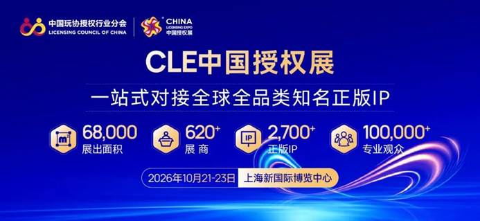 CLE中国授权展是唯一获得商务部批准的“中国国际”授权展,全球领先,成功举办17届,国内外授权商拓展中国市场乃至亚洲市场的首选,汇集超过 2600 项全球正版 IP资源,搭建 IP 授权和被授权企业跨界合作的精准对接平台,促进文化创意和实体经济的双向赋能。