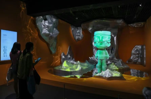 9 月底,周同学和上海博物馆携手打造了“了不起的老祖宗 —— 周同学的时空奇遇记” 主题艺术秀 ,以 “周同学” 作为叙事向导,联动上海博物馆 12 件馆藏珍贵文物,设置了多个特色单元。比如在 “玉见未来” 单元,四千多年前的 “玉神人” 被转译为戴未来感冠帽的周同学巨像投影,传递古人对天地的敬畏;“青铜跨时代” 单元里,上博镇馆之宝大克鼎的元素融入周同学铠甲设计,化身 “青铜卫士周同学”。让这场活动不仅是 IP 与文物的简单叠加,更是借助“周同学”的叙事能力,让传统文化以更亲切的方式触达年轻群体。