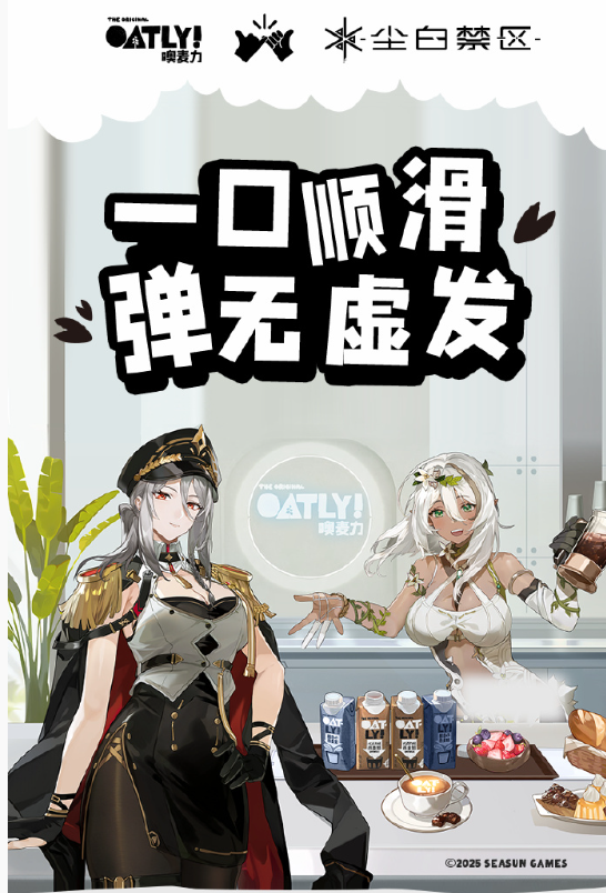 作为植物基饮品赛道的开拓者,OATLY 凭借咖啡大师系列在 B 端餐饮渠道与星巴克、奈雪的茶等头部连锁品牌的合作,让其成为大众认知中的“专业咖啡伴侣”。随着市场竞争加剧,OATLY尝试直接触达并转化 C 端消费者,尤其是追求新鲜与个性的年轻群体。OATLY 将目光投向用户基数庞大、消费意愿强烈的游戏圈层,通过与《少女前线2:追放》《尘白禁区》等热门国产游戏的深度联名,实现圈层破壁与 C 端市场增长的双重突破。