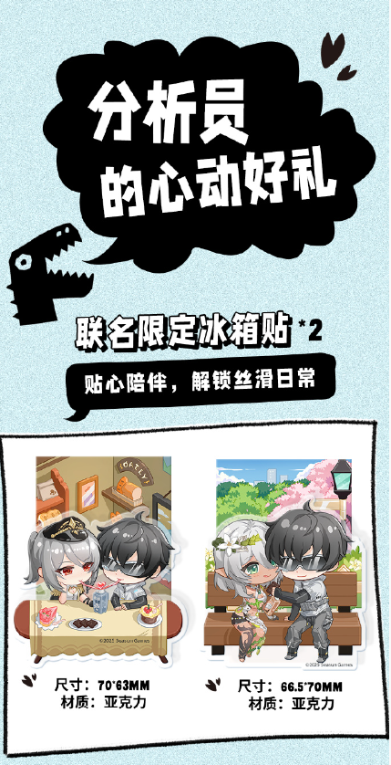 《尘白禁区》是颇受欢迎的国产轻科幻射击游戏,微博上尘白禁区相关话题阅读量超 10 亿,拥有众多忠实的粉丝人群。OATLY 与《尘白禁区》推出了联名燕麦奶礼盒,以及印有游戏人气角色奈莉德、妮塔形象的冰箱贴、杯垫、玻璃杯、专属 CDK 礼包卡等限定联名产品,实用主义的设计让玩家在日常生活中高频使用,延长品牌曝光周期。