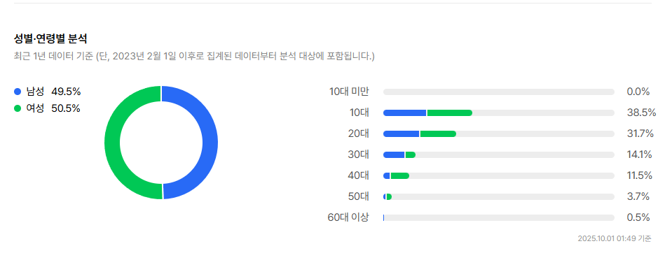 性别比例: 男性 49.5% / 女性 50.5% → 性别均衡